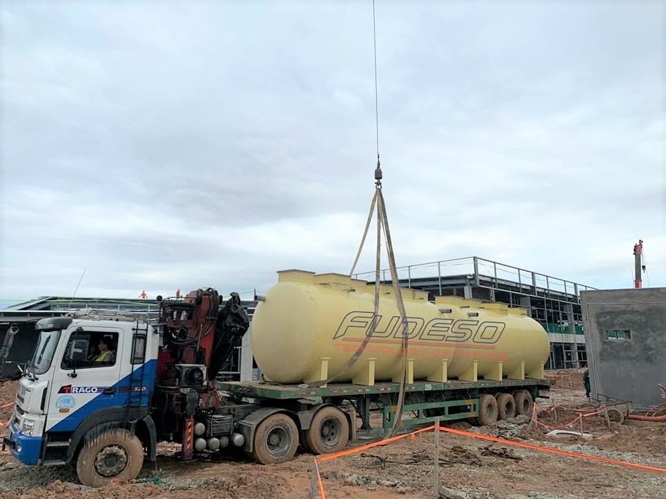 Hình 2: Vận chuyển và cẩu hạ bồn FRP